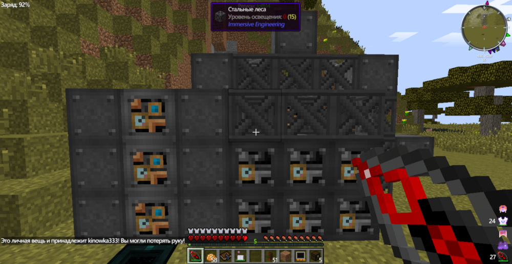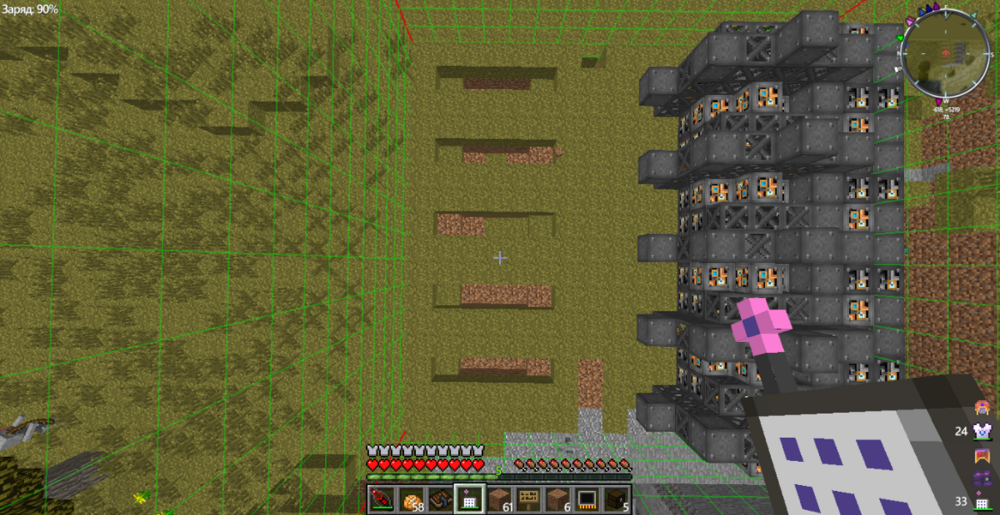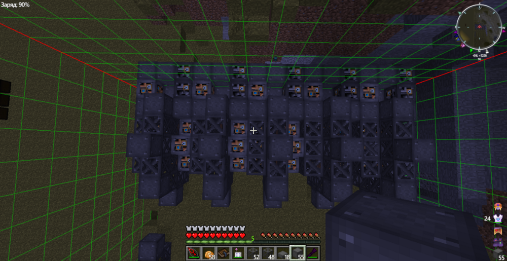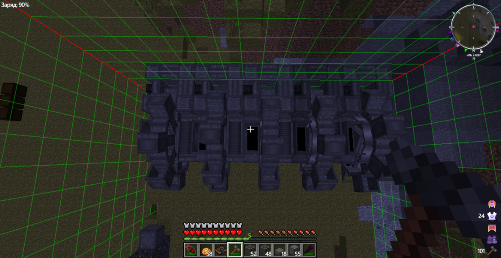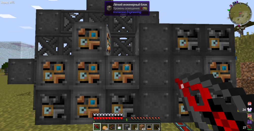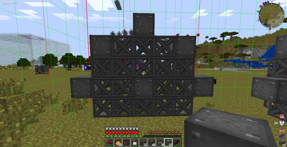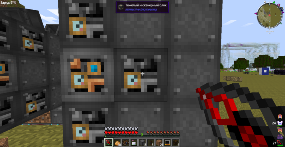 Всем привет, наверное многие задаются вопросом, как же добыть большое количество ресурсов на сервере за несколько часов? В этом нам поможет Экскаватор из мода Immersive Engineering с помощью которого мы сможем добывать до 40 тысяч руды. Для начала нам понадобиться колонковый бур. Скрафтив бур, размещаем его на землю(обязательно чтобы он стоял на блоке) Подключаем к нему энергию и если пошла анимация, значит всё сделано правильно. Через некоторое время, он закончит работу(проверить сколько осталось можно нажав по нему правой кнопкой мыши) и после завершения мы сможем посмотреть, находятся ли в этом чанке какие либо ресурсы. Как мы видим, в этом чанке никаких жил не оказалось. Это значит что нужно сломать бур, и перейти в другой чанк(проверить место чанков можно на кнопку f9) Исследование чанков, дело медленное, но его можно ускорить, если проверять сразу 4 чанка, сделать это можно, если поставить всё как на снимке. После того как всё таки нам удаётся найти чанк в котором есть ресурсы, в чате будет такое сообщение В нём написано какой тип ресурсов находиться в данном чанке, и насколько она целая (всегда 100%, но может быть что кто то уже копал тут) Дальше будет название всех жил которые есть, и какие ресурсы в ней находятся Когда же мы нашли чанк, в котором есть нужные нам ресурсы, нужно приступать к постройке самого экскаватора. Т.к. это многоблочная структура детально его постройку можно посмотреть в "руководство инженера" Тяжёлая техника --> Экскаватор. Для его работы требуется 4096 RF в тик, если же энергии не будет хватать, экскаватор будет постоянно притормаживать и работать урывками, что значительно замедляет его скорость работы. Можете сравнить как должен выглядеть правильно построенный экскаватор Если же всё правильно, подходим к стороне как на картинке, и жмём молотом инженера по блоку правой кнопкой мыши. Если всё сделано правильно, то структура должна принять свой окончательный вид. Далее нужно подключить энергию и поставить хранилище, куда экскаватор будет складывать руды. С этой стороны нужно подключить RF энергию (можно подключать как и коннекторами из Immersive Engineering так и другими трубами, которые передают RF) Сундук или иное хранилище ставим к блоку по которому мы нажимали молоточку Всё, постройка полностью готова, ваш экскаватор будет копать руду пока жила полностью не иссякнет. Дальше, если вы уже игрок среднего развития и вас не устраивает скорость добычи ресурсов, я расскажу как можно её ускорить. Делается это, путём размещения большего количества экскаваторов в чанке (да, их можно ставить больше чем один) оптимальное количество экскаваторов это 10. Конечно же на это требуется много ресурсов, так что если вы ещё не сильно развиты, оставьте эту часть гайда на потом. Для начало, нужно отступить от границы чанка по горизонтали на 4 блока После отступить ещё 2 блока по вертикали от границы чанка. Теперь роем маленькую ямку. Теперь через каждые 2 блока роем ещё 4 таких ямки. Начинаем строить ковши экскаватора заполняя с самого нижнего блока. Должно получиться 5 таких ковшей Теперь нужно вокруг этих 5 ковшей построить экскаваторы (важно, чтобы 1 блок корпуса экскаватора выходил за чанк После постройки экскаваторов, жмём молотом инженера на каждый как с первым, и если всё правильно, они принимают форму. Осталось подключить их все к рф энергии, вот тут ес